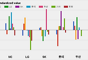 SK의 경우 대표적으로 밸런스 문제가 보인 팀인데, 수비/투수가 3.6승을 벌었지만 타자들이 -1.5승을 까먹었고 기아 역시 투수/수비가 2.4승을 버는 동안 공격 쪽이 -2.0승을 잃었습니다. 롯데는 반대로 공격이 +3.6승을 벌었고 투수/수비는 -0.6승을 잃었습니다.