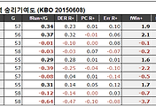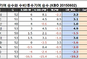 KBO 팀별 공격력과 투수/수비력 승리기여도 (2015년 6월2일) (2) | 2015.06.03 |