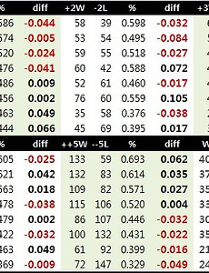 톰탱고 TomTango 레버리지 인덱스 Leverage Index (LI) 톰 탱고의 레버러지 인덱스 테이블입니다.레버리지 인덱스Leverage Index는 특정한 아웃카운트, 특정한 온베이스 주자상황 각각이 얼마나 팀의 승패에 큰 가중치를 가지고 있는지를 측정할 수 있는 통계적 도구입니다. 테이블이 row는 주자상황과 아웃카운트 상황이고, 테이블의 column은 득점차 상황입니다. 테이블은 홈팀 입장의 숫자입니다. 따라서 1회초의 경우, 홈팀이 이기고 있는 상황에 대한 LI값은 없습니다. LI는 보통 불펜투수의 투구이닝에 경기상황의 중요도에 따른 가중치를 곱해주기 위해 사용합니다. 당연하겠지만, 8회 5점을 리드한 상황에서 1이닝 무실점을 기록한 불펜투수의 기록과, 8회 동점 상황의 1사 만루 상황에 ..
